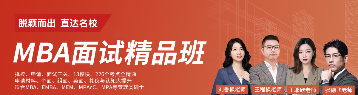 22年MBA面试辅导经验,数万名考生得失成败案例研究,众多院校友好合作,全国精华面试大牛与互联网团队精心打造靠谱的提前面试精品班!