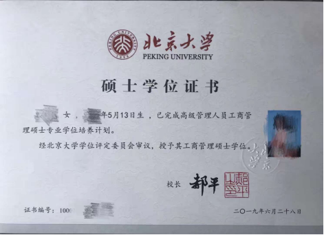 • 北京大学工商管理硕士学位证书
